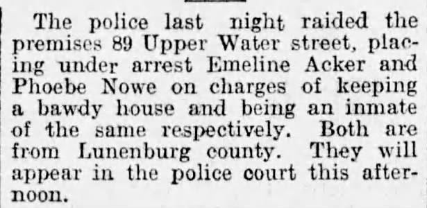 And Phoebe Ann—the restless one. Her name surfaced in the Halifax papers in 1912, arrested in a raid on a Water Street brothel. Perhaps she sought freedom, escape, or simply a place of her own. Whatever she found there, history did not preserve it. After that, she vanished from the record.