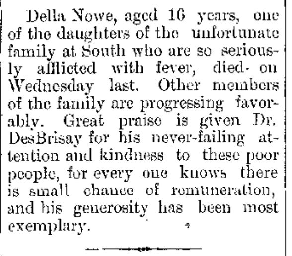 When Dr. Thomas DesBrisay finally made the journey from Lunenburg township to First South, he found the family in a desperate state. He moved from bed to bed, taking pulses, cooling fevered skin, mixing medicines. The Bridgewater Bulletin later praised him for his “never-failing attention and kindness to these poor people,” noting that “everyone knows there is small chance of remuneration.” His generosity, it said, was “most exemplary.”